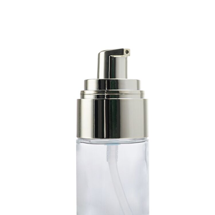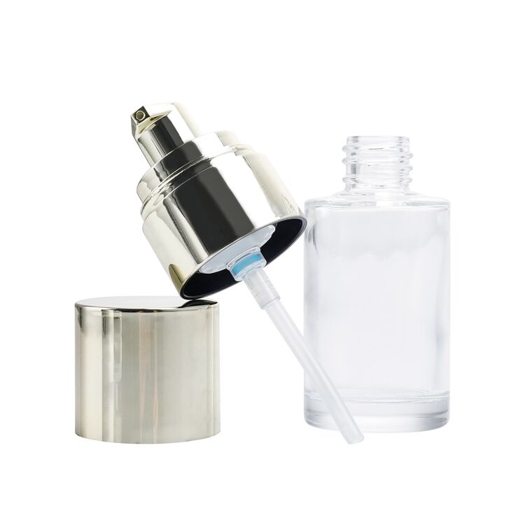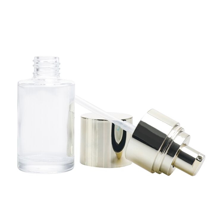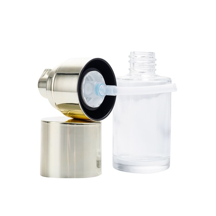 GB108 Skincare Packaging Round 30ml Lotion Cosmetic Cream Essential Oil Glass Bottle,round clear Foundation Pump Head Cosmetics Bottle